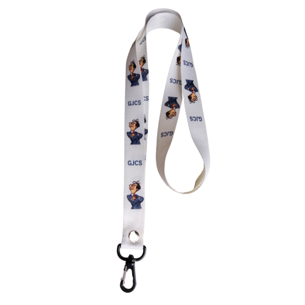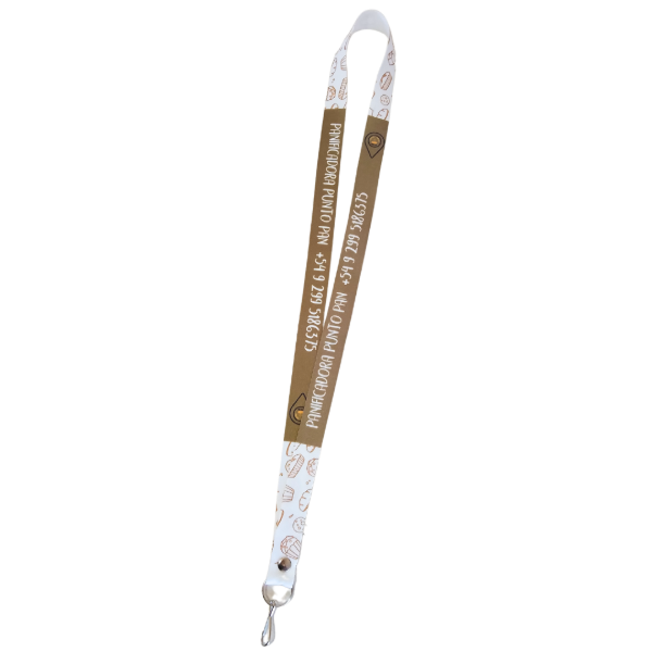 PACK DE 150 CINTAS FONDO BLANCO Y LOGOS Y TEXTOS A COLOR CON MOSQUETON PORTACREDENCIAL , PUEDE SER METALICO O PLASTICO NEGRO.